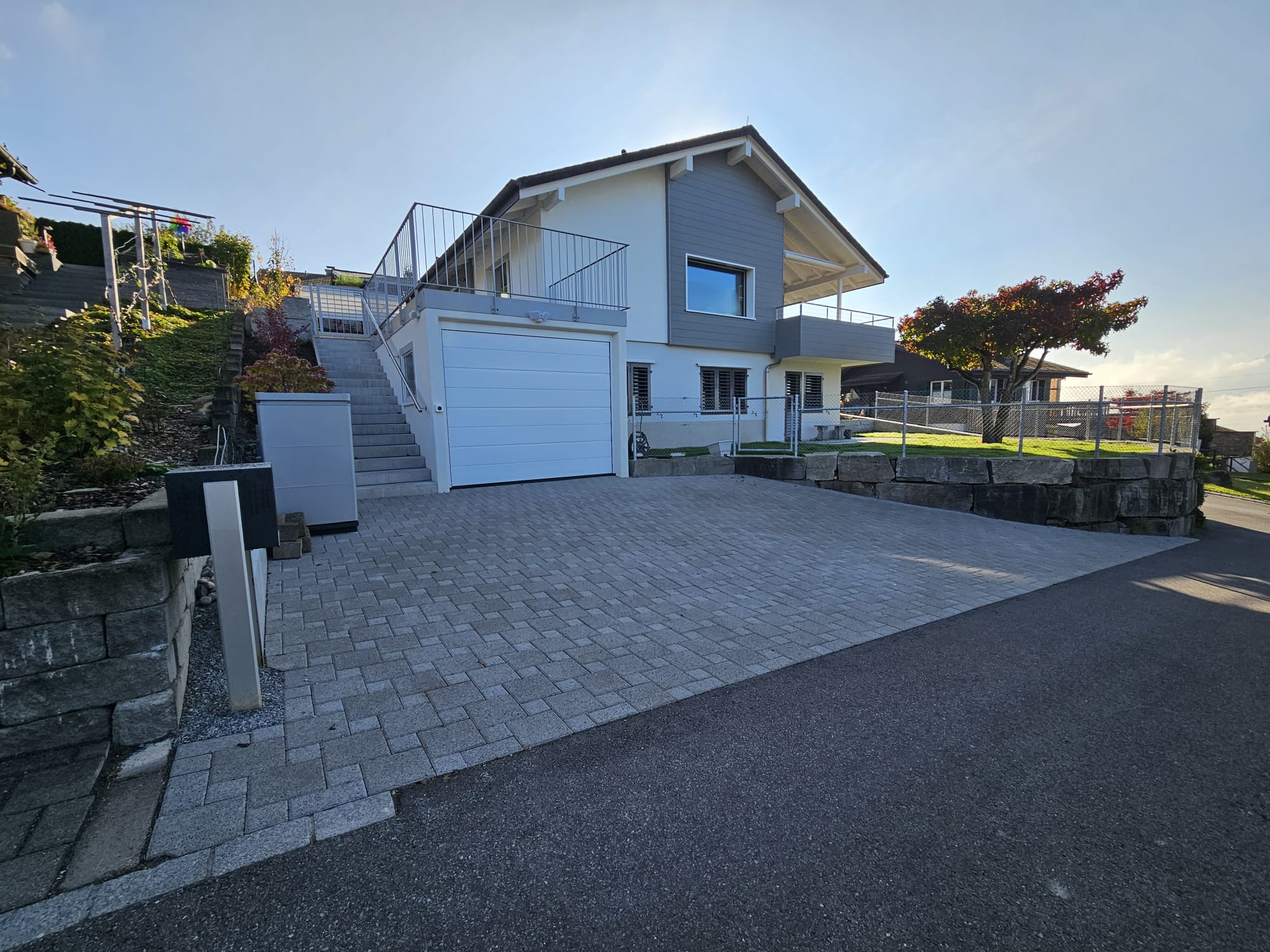Mittlerweile sind wir ca. 6 Monate im Besitz dieser Garagen und die Umgebungsarbeiten sind auch abgeschlossen. Auch ein sehr grosser und breiter Amerikaner SUV hat super Platz in der Garage, sogar die Heckklappe kann spielend in der Garage geöffnet werden, ohne dass sie oben an der Decke anstösst. Vielen Dank nochmals für alles, wir sind super zufrieden und werden Sie gerne weiter empfehlen!!!
